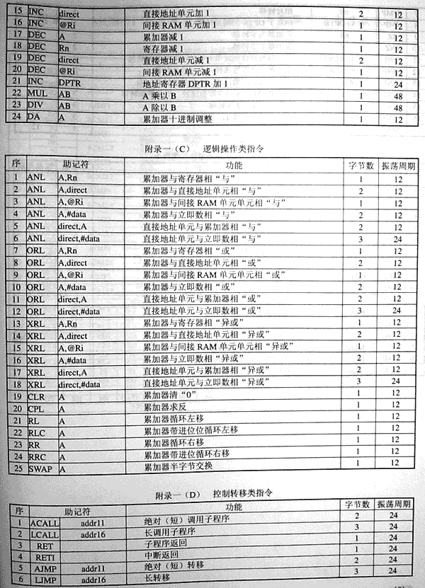 以上是AT89C51单片机的汇编指令表,共111条指令。