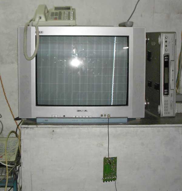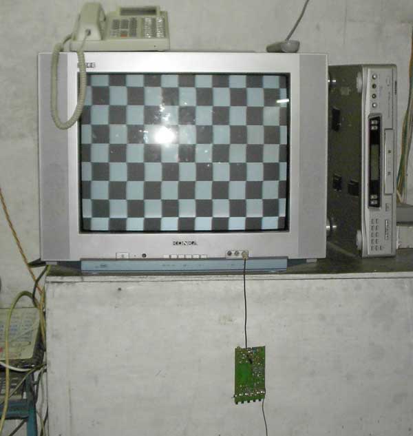 本板可以直接输出视频信号接到电视机的VIDEO接口;也可以无线发射电视信号,让电视机好象接收电视台信号一样接收。