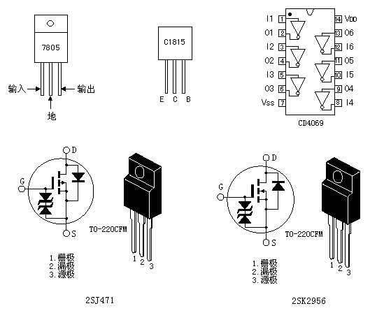 图5 MOS 场效应管也被称为MOS FET, 既Metal Oxide Semiconductor Field Effect Transistor(金属氧化物半导体场效应管)的缩写。它一般有耗尽型和增强型两种。本文使用的为增强型MOS 场效应管,其内部结构见图5。它可分为NPN型PNP型。NPN型通常称为N沟道型,PNP型也叫P沟道型。由图可看出,对于N沟道的场效应管其源极和漏极接在N型半导体上,同样对于P沟道的场效应管其源极和漏极则接在P型半导体上。我们知道一般三极管是由输入的电流控制输出的电流。但对于场效应管,其输出电流是由输入的电压(或称电场)控制,可以认为输入电流极小或没有输入电流,这使得该器件有很高的输入阻抗,同时这也是我们称之为场效应管的原因。